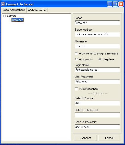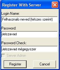 Ha megvan akkor [Connect], ezután a [Self] menu-ben válasszuk ki a [Register With Server] menu-t, ezt töltjük ki a kép alapján: